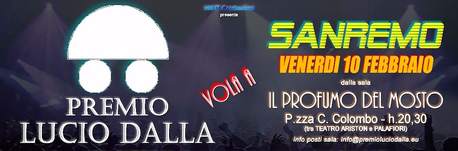 PREMIO LUCIO DALLA vola a SANREMO Team storico del Premio al completo e new entry presenti alla vetrina sanremese del prossimo 10 Febbraio: Maurizio Meli, Claudia Scaglioni, Eleonora Zappulla, Alessandra Boni, Manuel Auteri, Renato Droghetti, Tinamaria Marongiu, Andrea Sassoli De Bianchi, Massimo